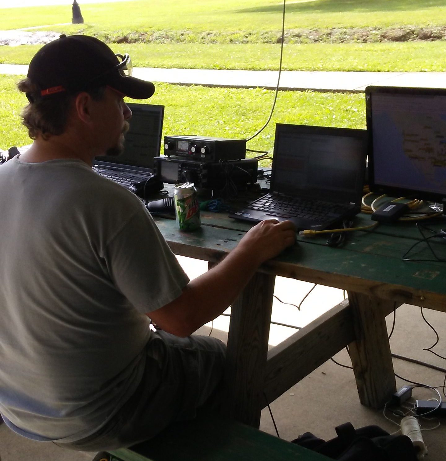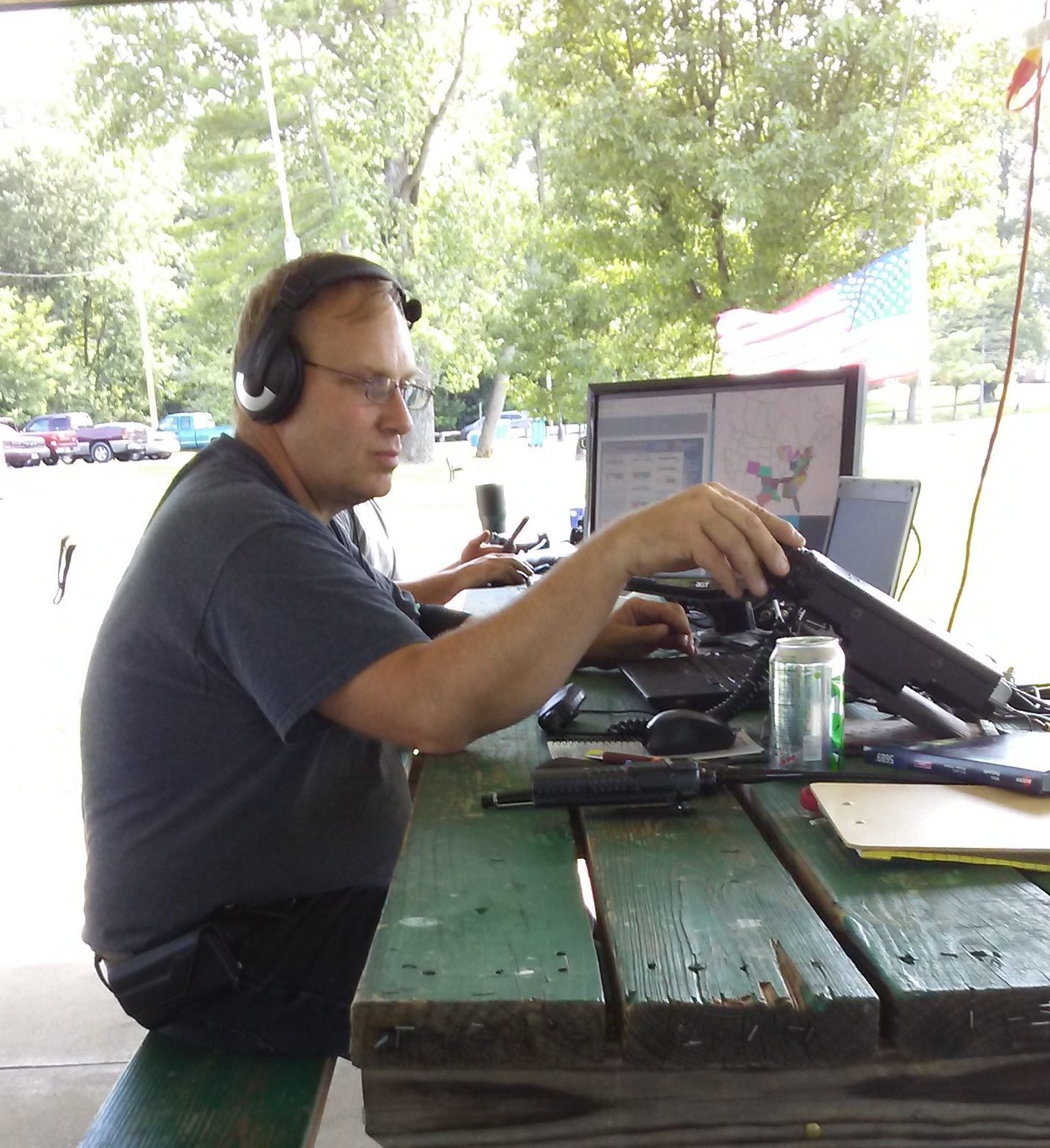 FD 2017 Photos Images from KD9IPZ FD 2017 @ Boonville City Lake in Boonville, IN with KA9VKO W9KHP K0RL KC9CLO KA9INN K9SRC KC9DPD K9OGR KC9OUT WB9QVR Photo Images by Scott Taylor – KA9INN Chris getting a lessen from Ole Greasy Rag Deep in thought or listening intently?